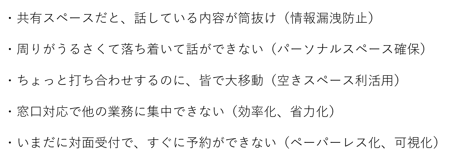 共有スペースだと、話している内容が筒抜け
